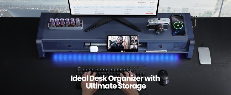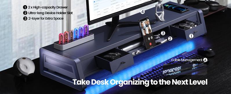 - Two-Tier Storage with 2 Drawers: The metal monitor stand riser features 2 pull-out drawers and dual-tier storage, offering a neat solution for office essentials like USB drives, pens, notebooks, and smartphones. Keep everything organized and within reach for a clutter-free, more efficient workspace